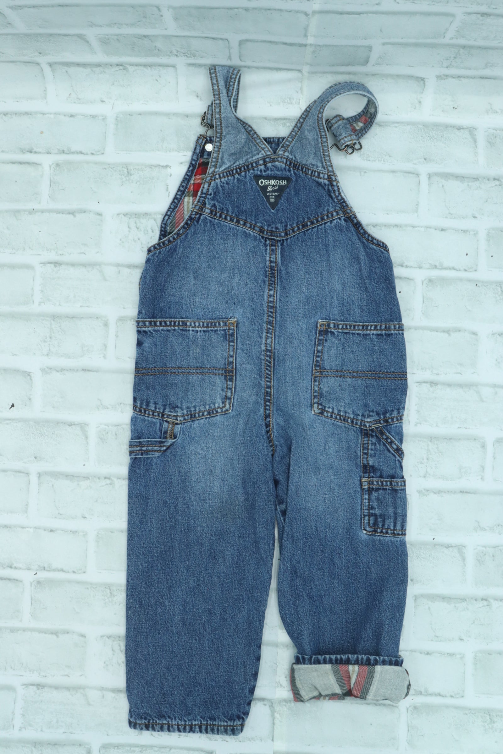 Osh Kosh, Denim Overalls with Plaid Lining, 3T