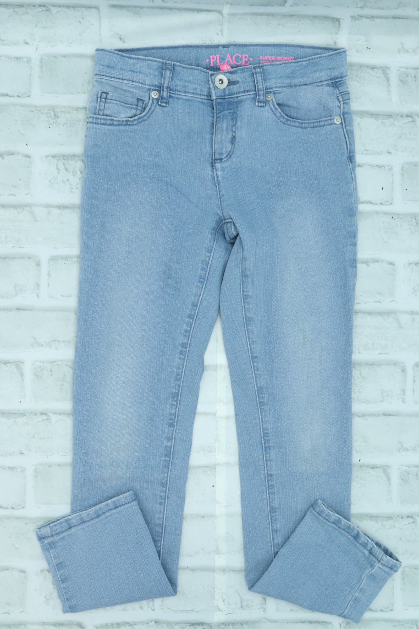 Children's Place, Super Skinny Jeans with Adjustable Waistband, stain at knee, Size 8 is backordered and will ship as soon as it is back in stock.