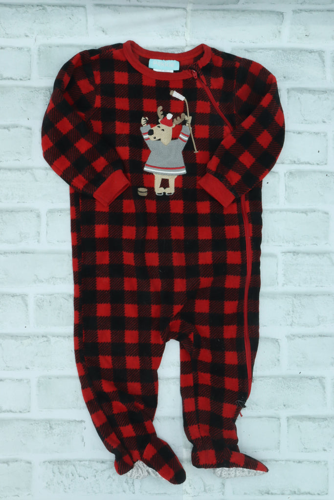 Pekkle, Fleece Hockey Moose Sleeper with Two Way Zipper, 12 Month