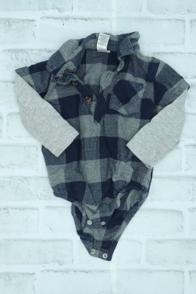 George, Plaid Long Sleeve Diaper Shirt, 12-18 Months