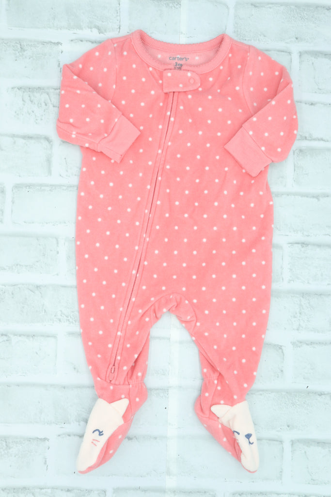 Carter's, Pink Polka Dot Fleece Sleeper, 3 Month
