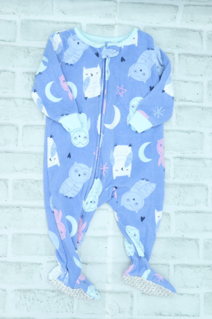 Carter's, Fleece Owls Sleeper, small stain on neckline, 9 Month