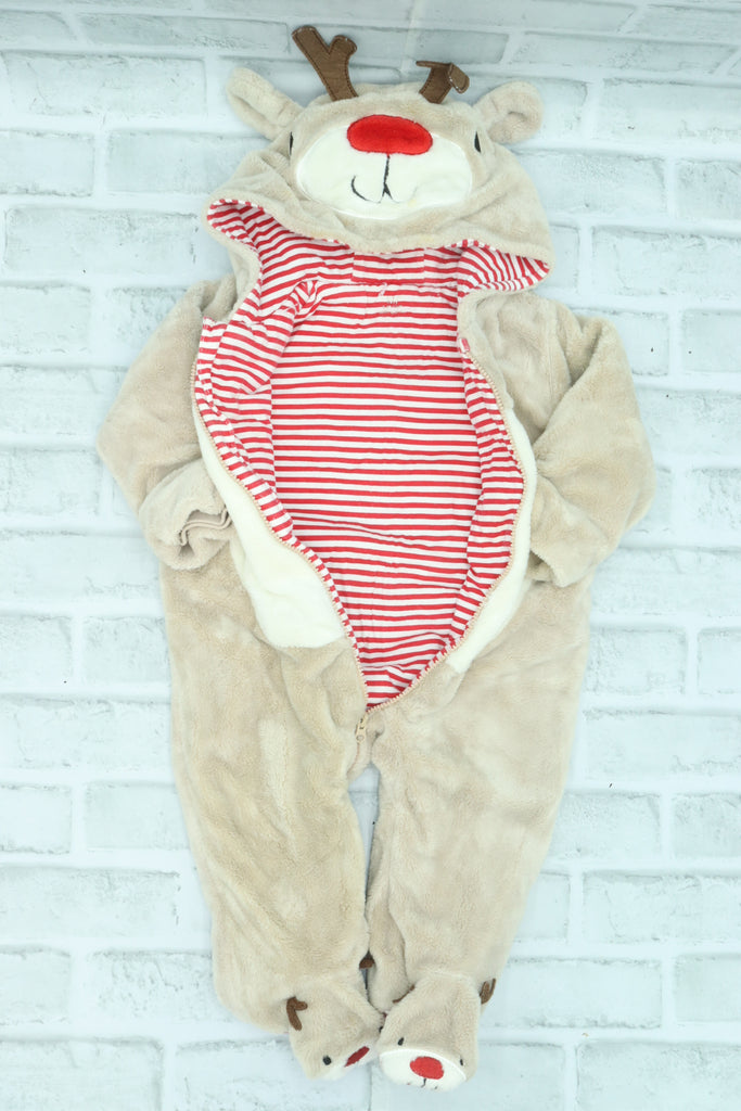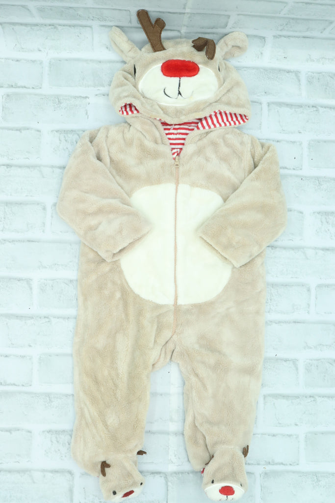 Primark, Fuzzy Reindeer Onesie, small stain on hood, 6-9 Months