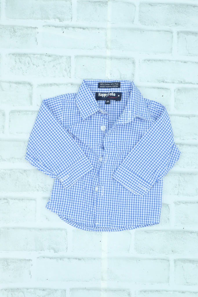 Happy Fella, Blue Checkered Button Up, 9 Month