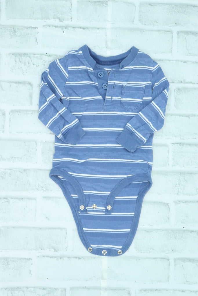 Osh Kosh, Blue Striped Diaper Shirt, 6 Month