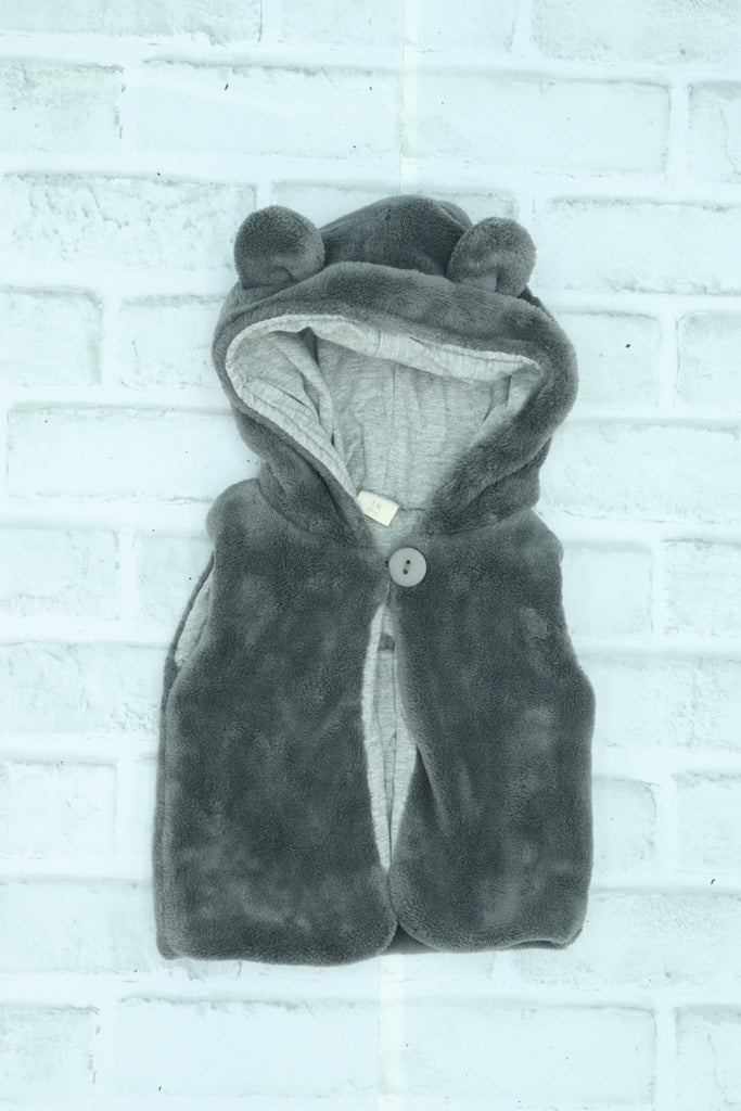 Cotton Fish, Fuzzy One Button Hooded Vest, 3 Month