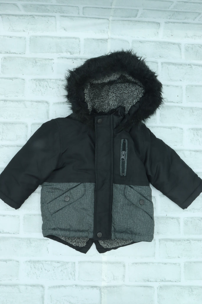 Primark, Fuzzy Lined Winter Jacket with Faux Trimmed Hood, Like NEW, 6-9 Months