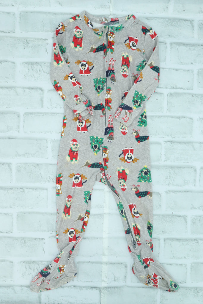 Old Navy, Christmas Dogs Sleeper with Two Way Zipper, stain on chest, 18-24 Months