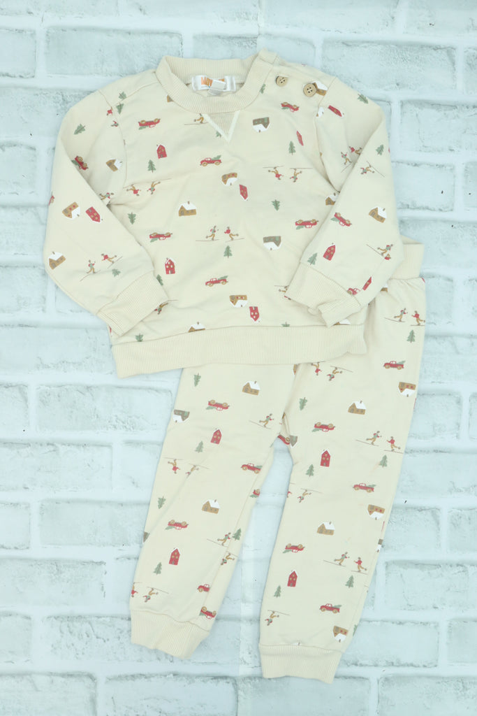 Monkey Bars, Holiday Sweater and Pants Set, GUC due to various small stains, 24 Month