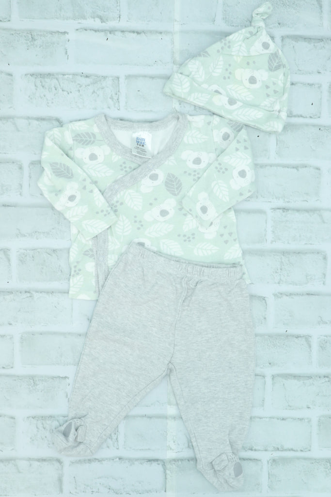Baby Mode, 3 Piece Koala Set with Footed Pants, light stain on toque, 3-6 Months