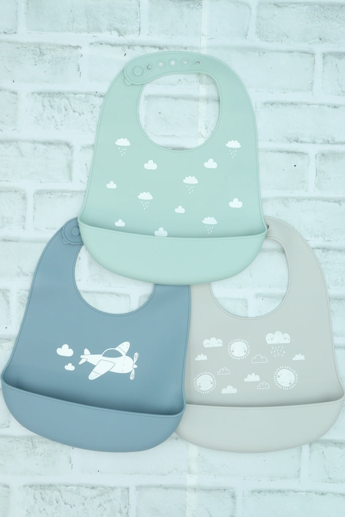 Unknown Brand, Set of 3 Silicone Bibs, Excellent Condition