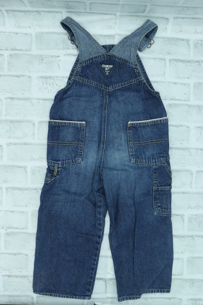 Osh Kosh, Denim Heart Print Overalls, GUC due to staining at knees, 3T