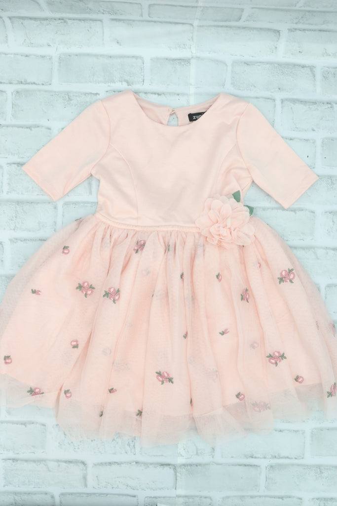 Zunie, Pink Party Dress with Floral Tulle Skirt, Size 4