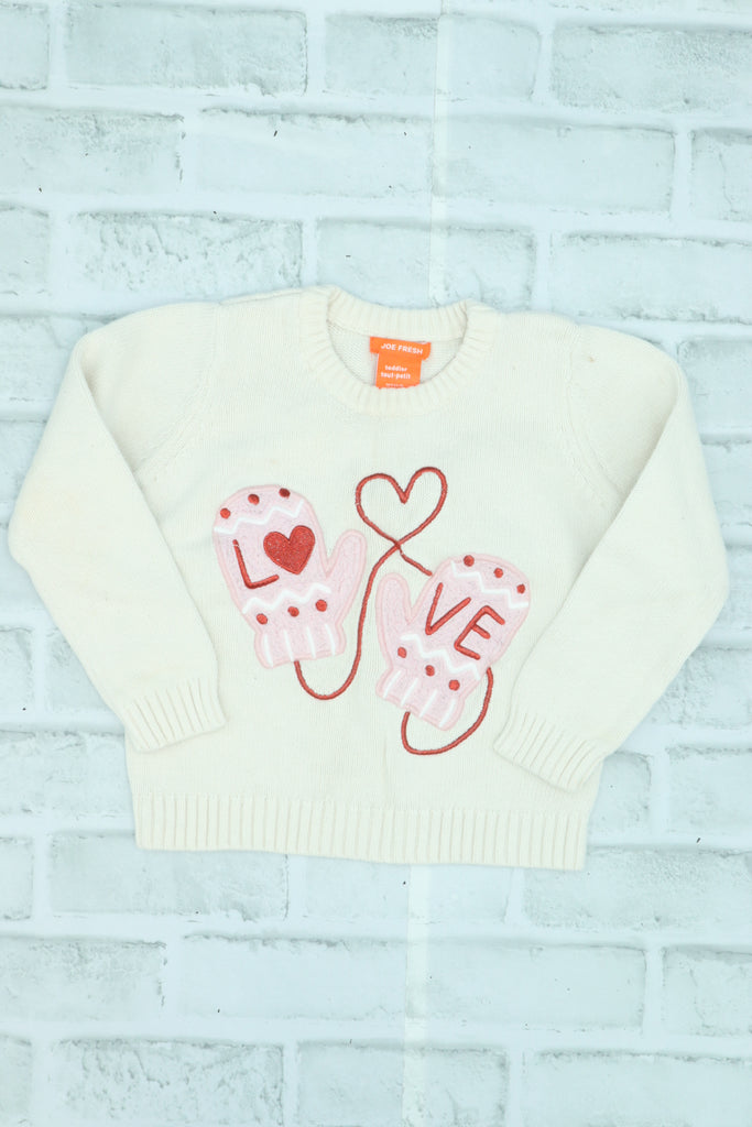Joe Fresh, "Love" Knit Sweater, light staining on arm/small stain on shoulder, 3T