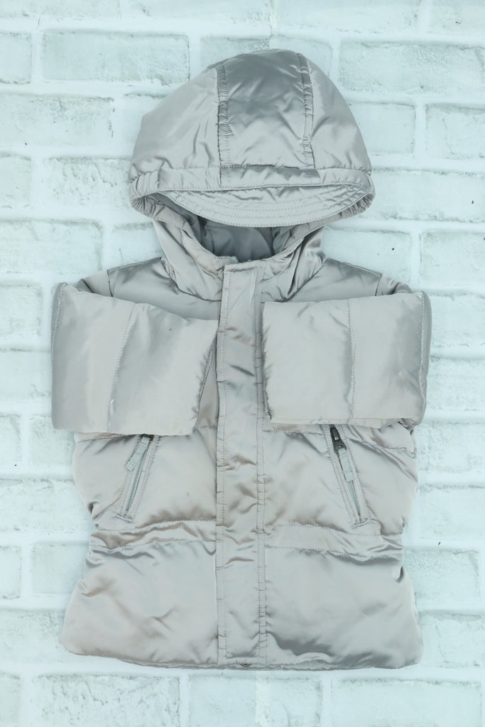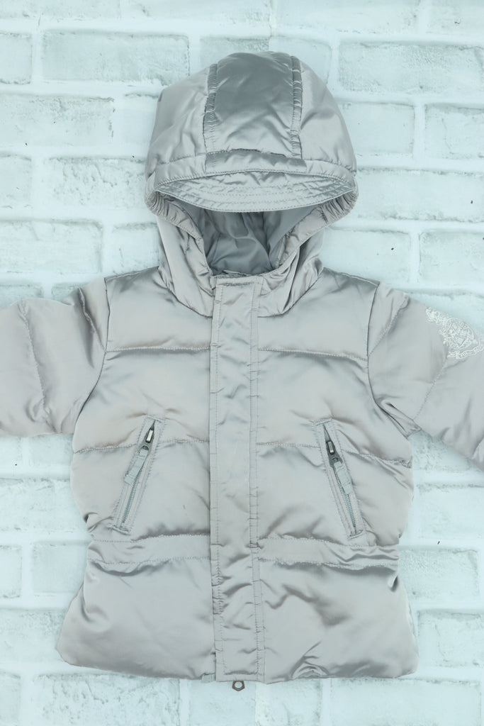 Ralph Lauren, Silver Puffer Jacket, GUC - missing one snap, 12 Month