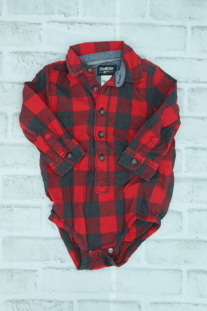 Osh Kosh, Red Plaid Button Up Diaper Shirt, 12-18 Months