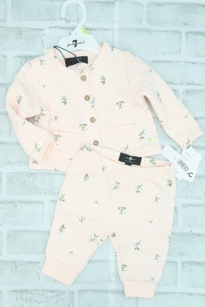 New with Tags, 7 For All Mankind, Pink Quilted Set, 0-3 Months