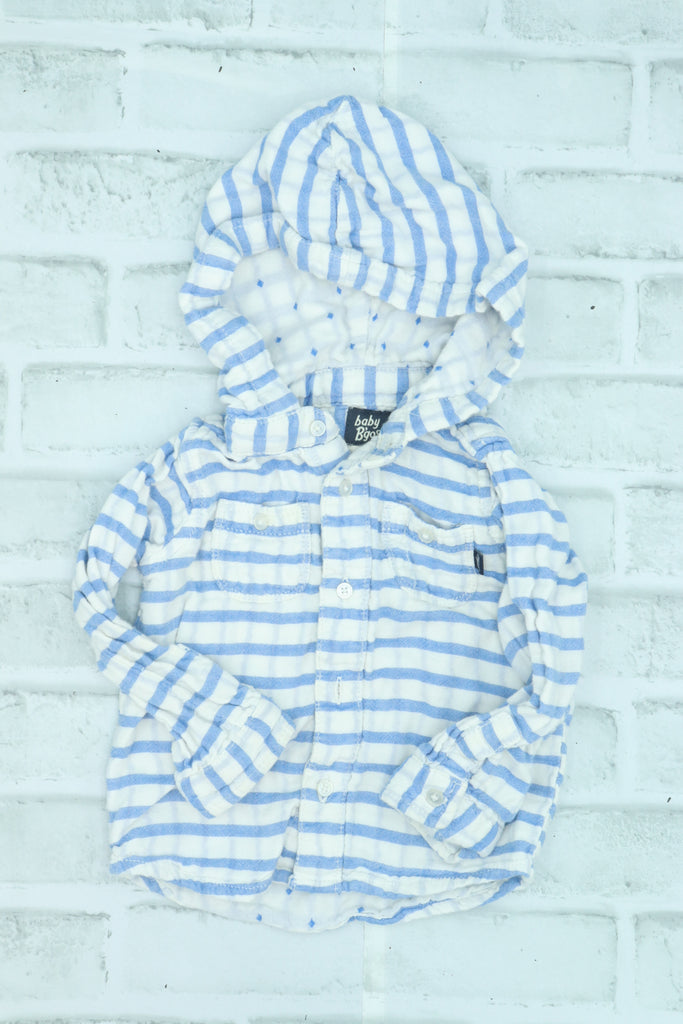 Baby B'Gosh, Blue Striped Hooded Button Up, 18 Month