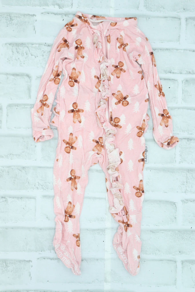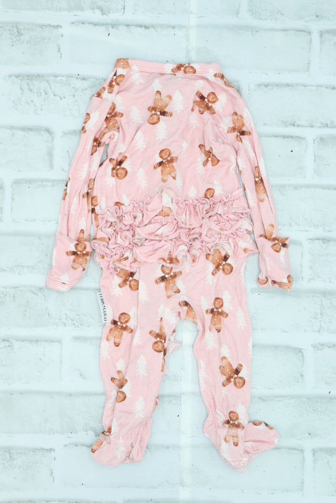 Milk + Coco, Bamboo Gingerbread Sleeper with Ruffle Bum, light wear, 0-3 Months