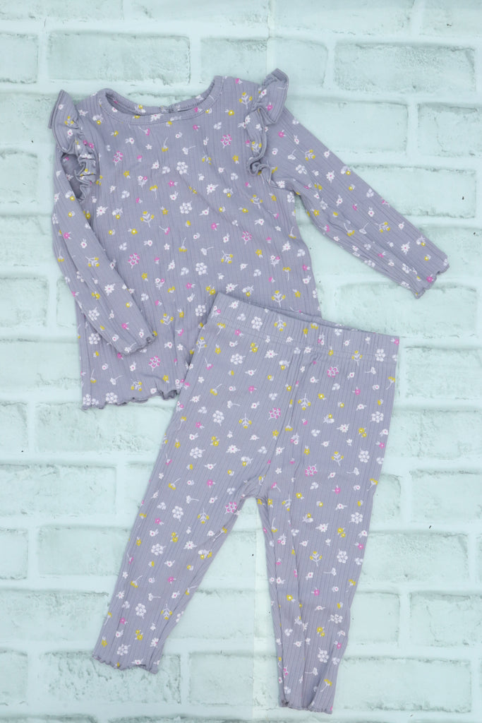 George, Ribbed Floral Set, small light stain on leg, 6-12 Months