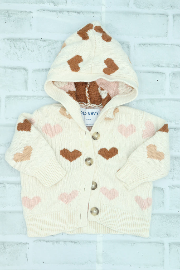 Old Navy, Button Up Heart Sweater, 3-6 Months