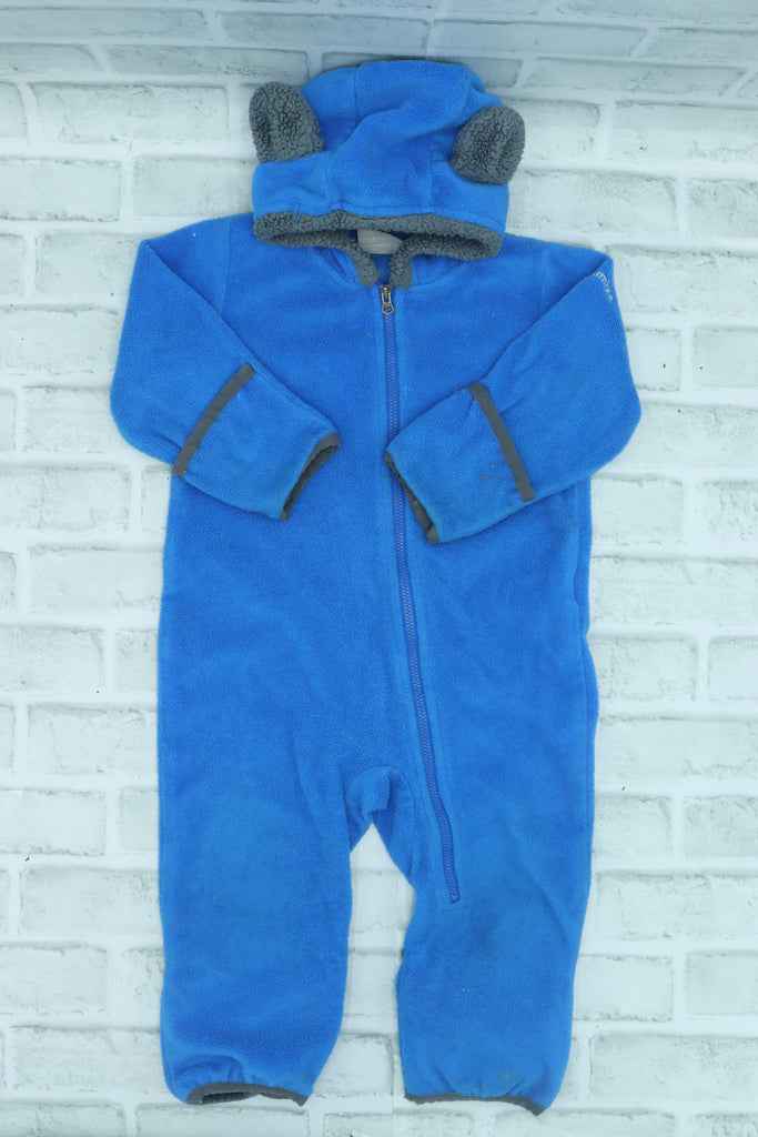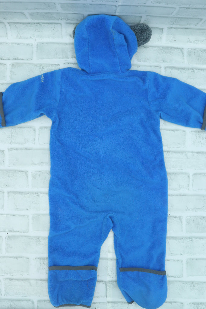 Columbia, Blue Fleece Bunting Suit, GUC due to small stains, pilling at hems and light wear, 12-18 Months