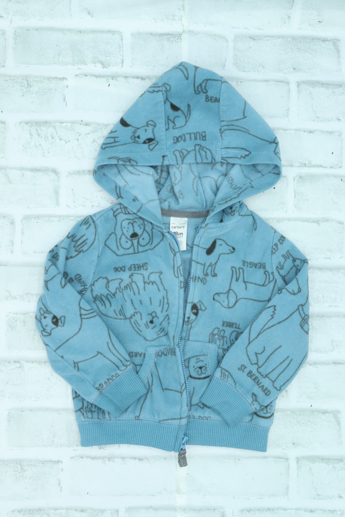 Carter's, Fleece Dogs Zip Up, light pilling at wrists, 18 Month