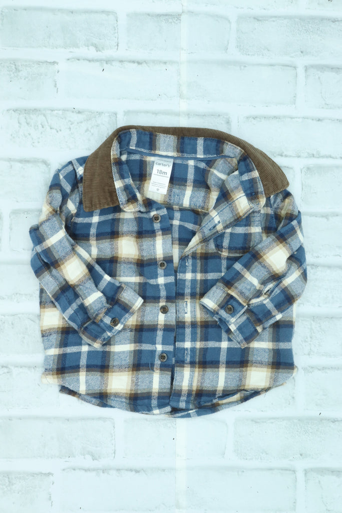 Carter's, Plaid Button Up with Corduroy Collar, light wear, 18 Month
