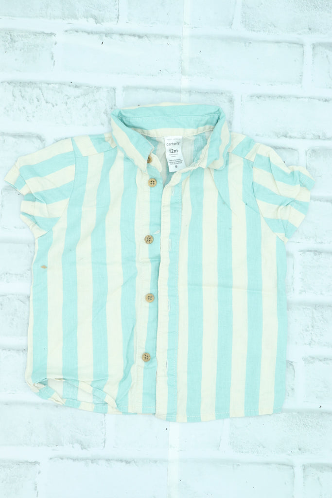 Carter's, Striped Linen Short Sleeve Button Up, 12 Month