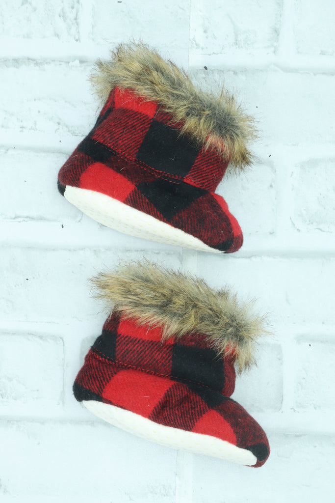 Inidigo Baby, Fuzzy Plaid Booties, Excellent Condition, 0-6 Months