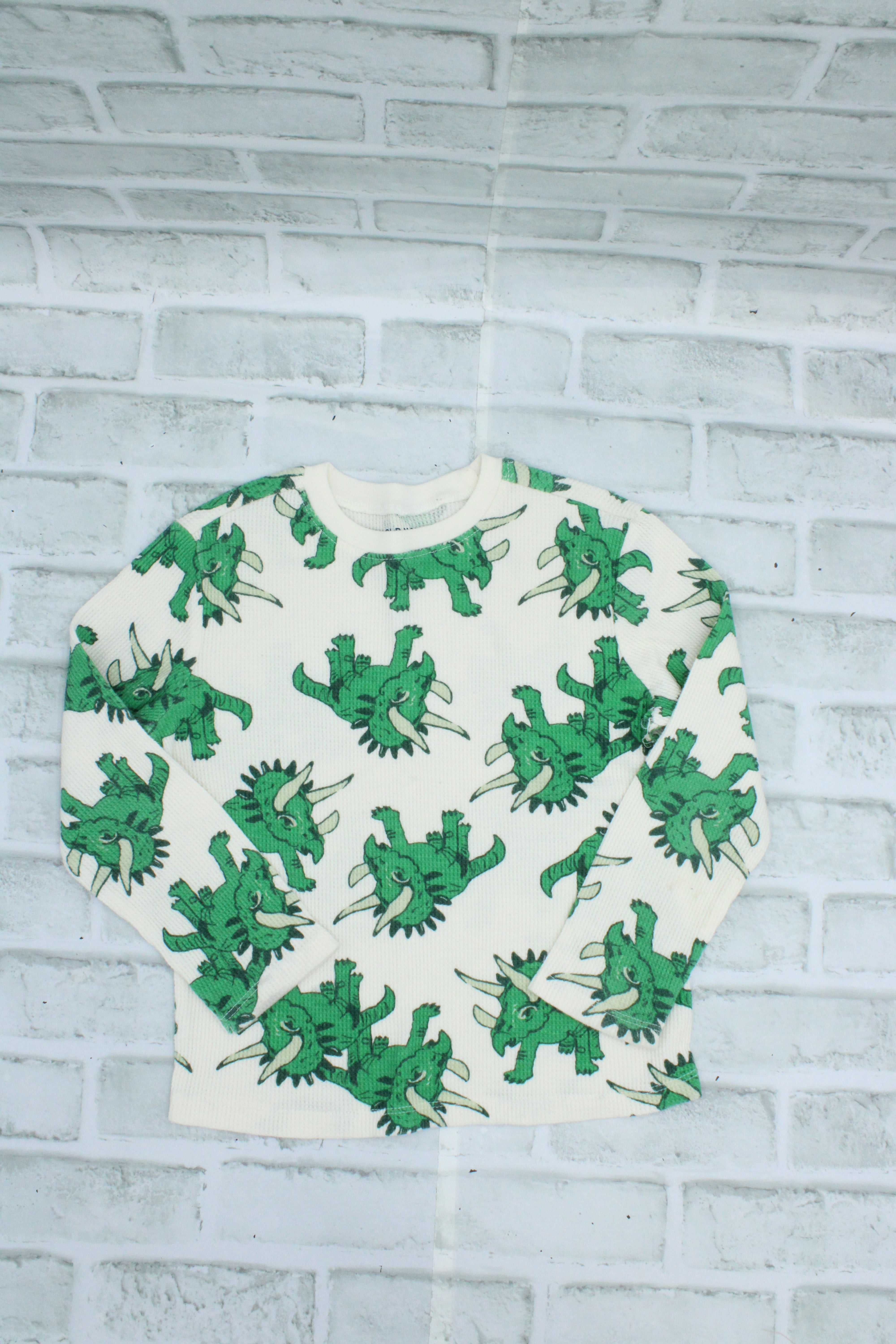 Old Navy, Green Dinosaur Waffle Long Sleeve, 5T
