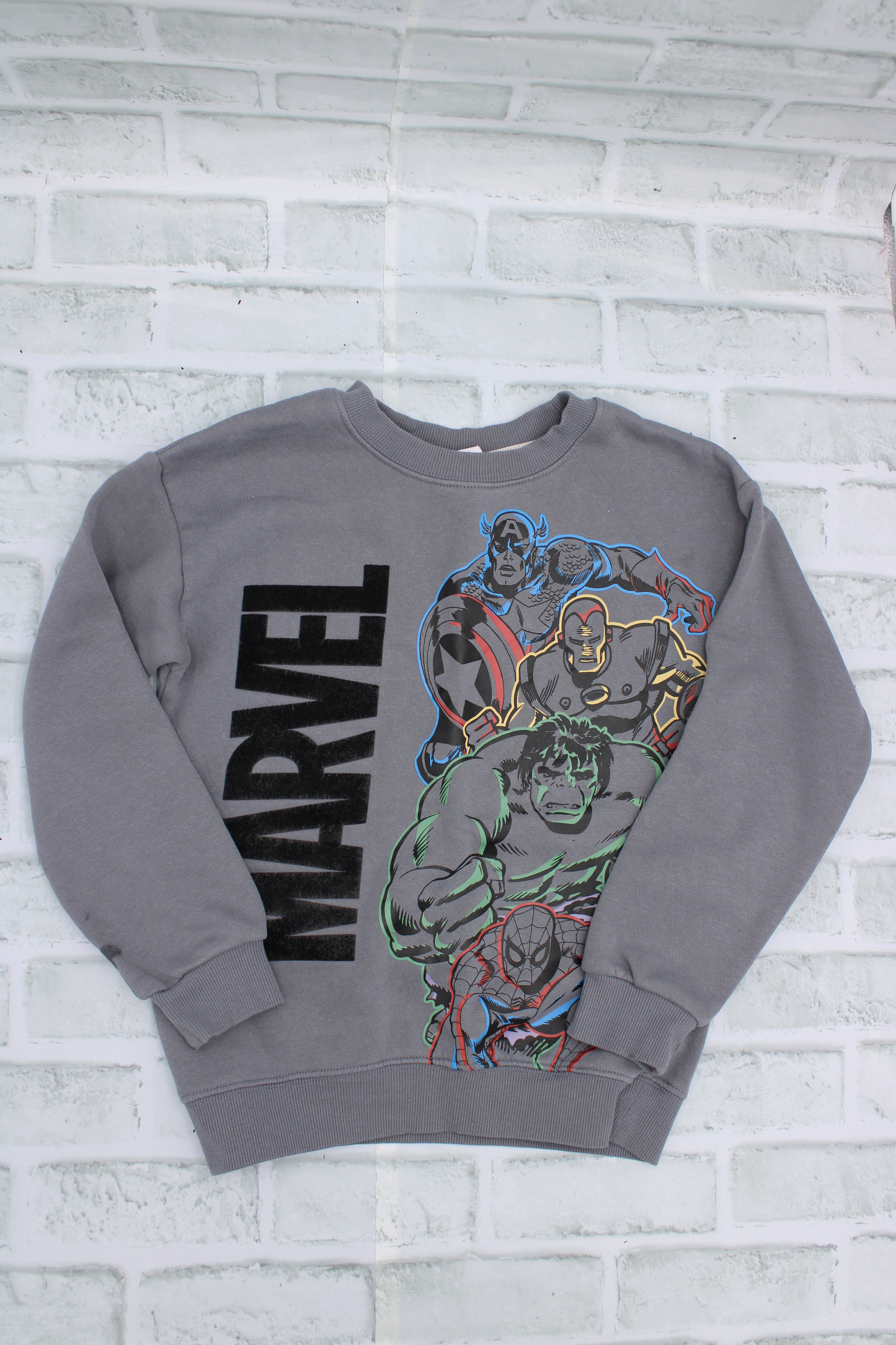 Marvel, Grey Sweater, Light wear on lettering, Size 7