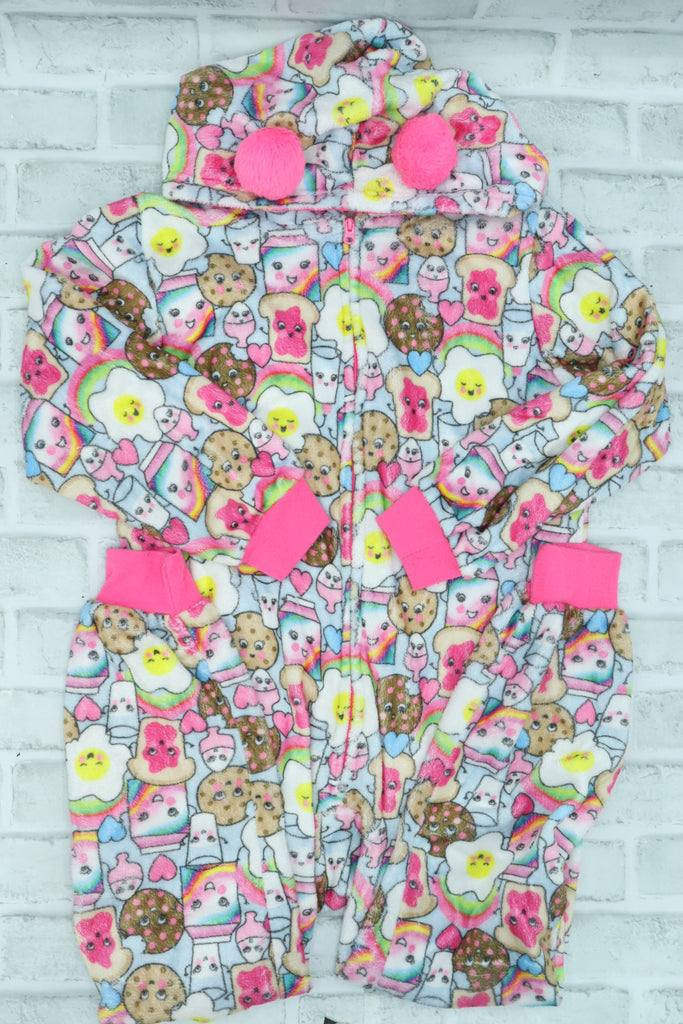 PJ Place, Fuzzy Hooded Food Onesie, light pilling at cuffs, Medium (7/8)