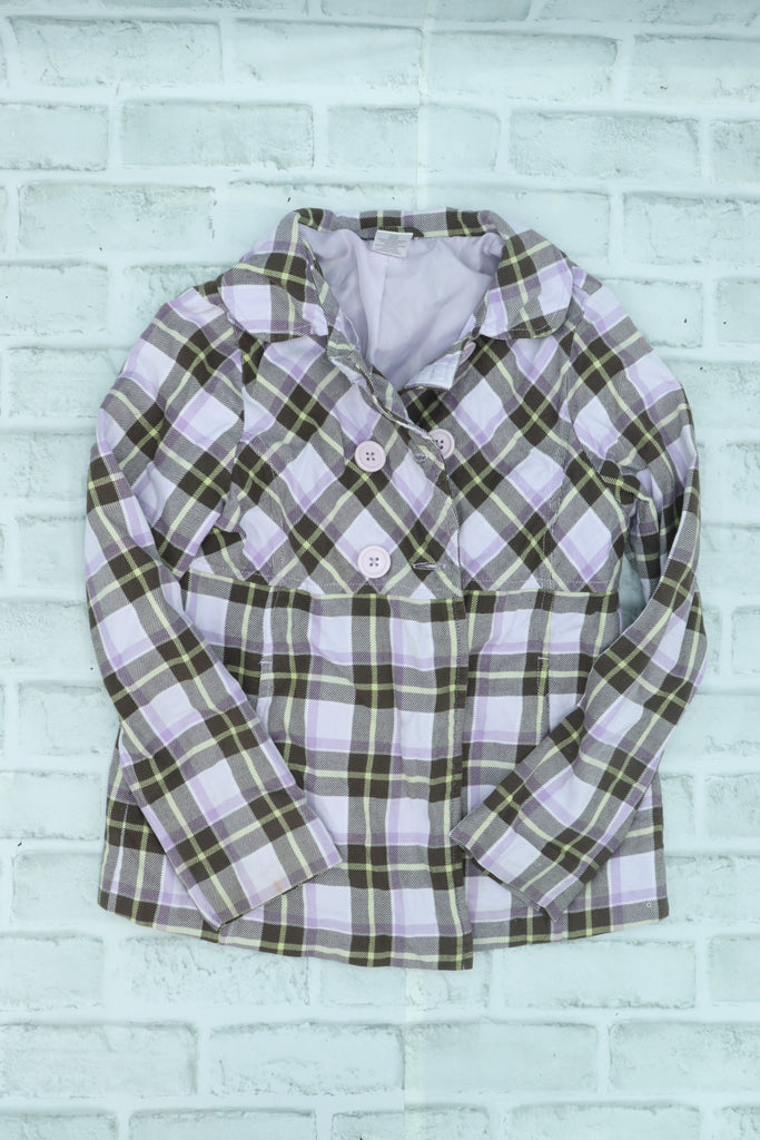 Gymboree, Plaid Button Up Lightweight Jacket with Polyester Lining, small stain at wrist, Medium (7-8)