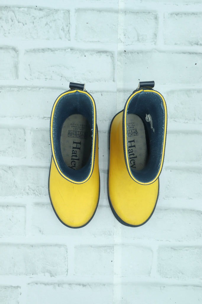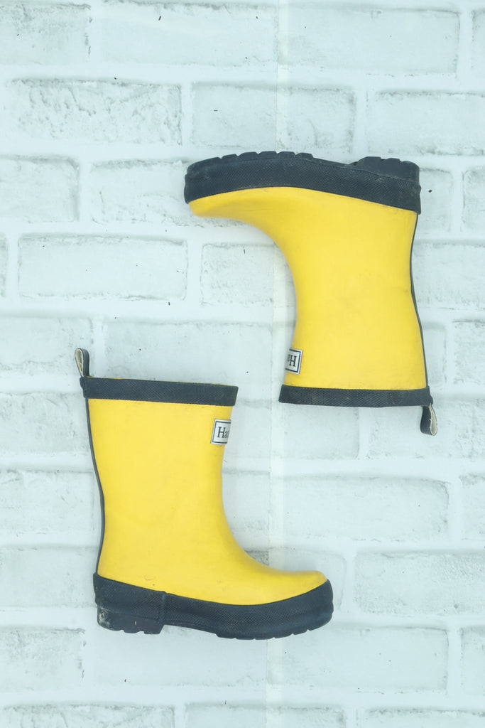 Hatley, Yellow Rain Boots, scuffing and dirt staining, Size 9