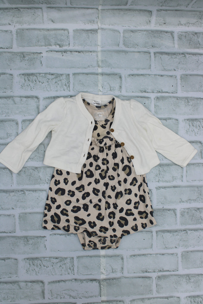 Carters, Leopard print diaper shirt with white cardigan, 9 Months