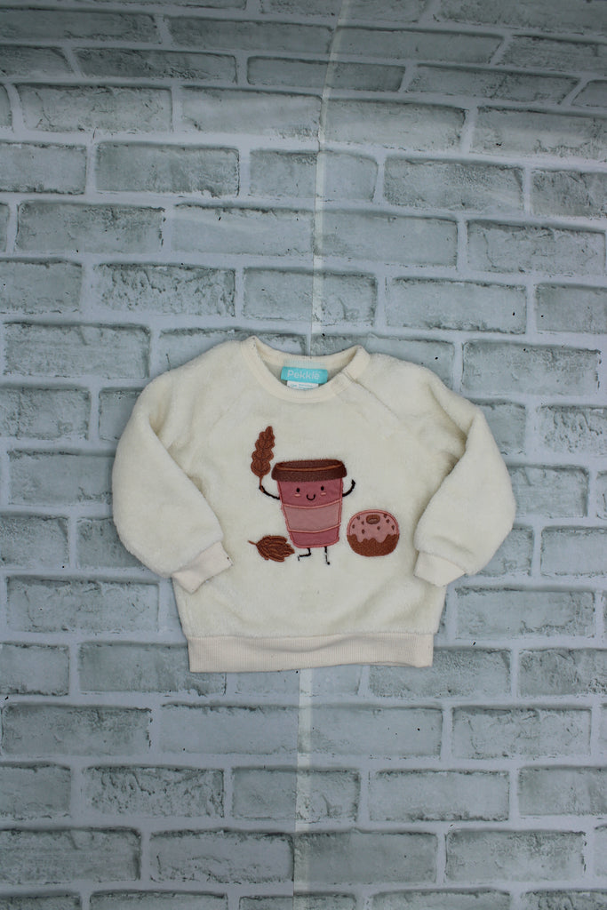 Pekkle, White Fall Coffee Cup Sweater, 12 Months