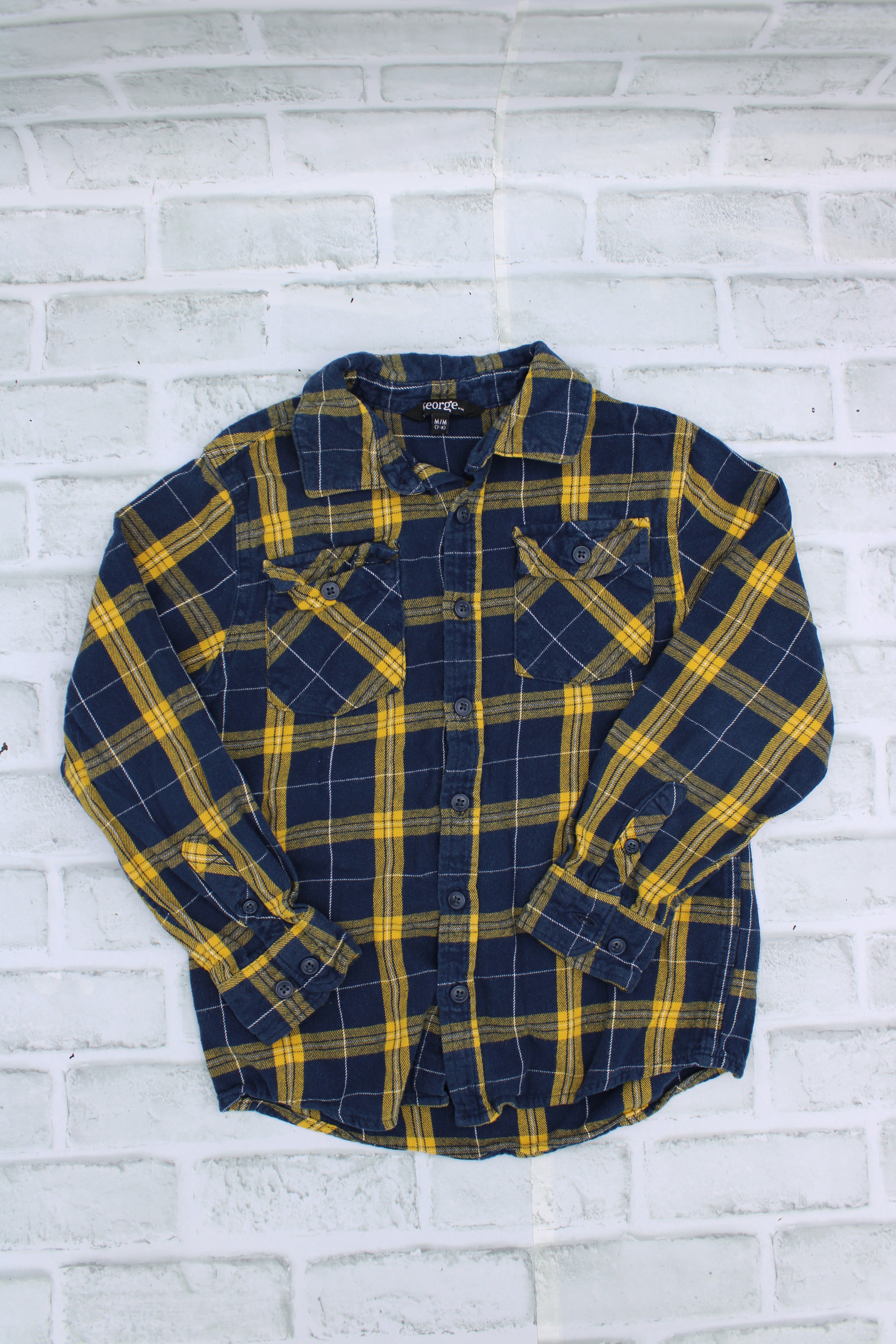 George, Yellow Plaid Button Up, Size Medium (7/8)