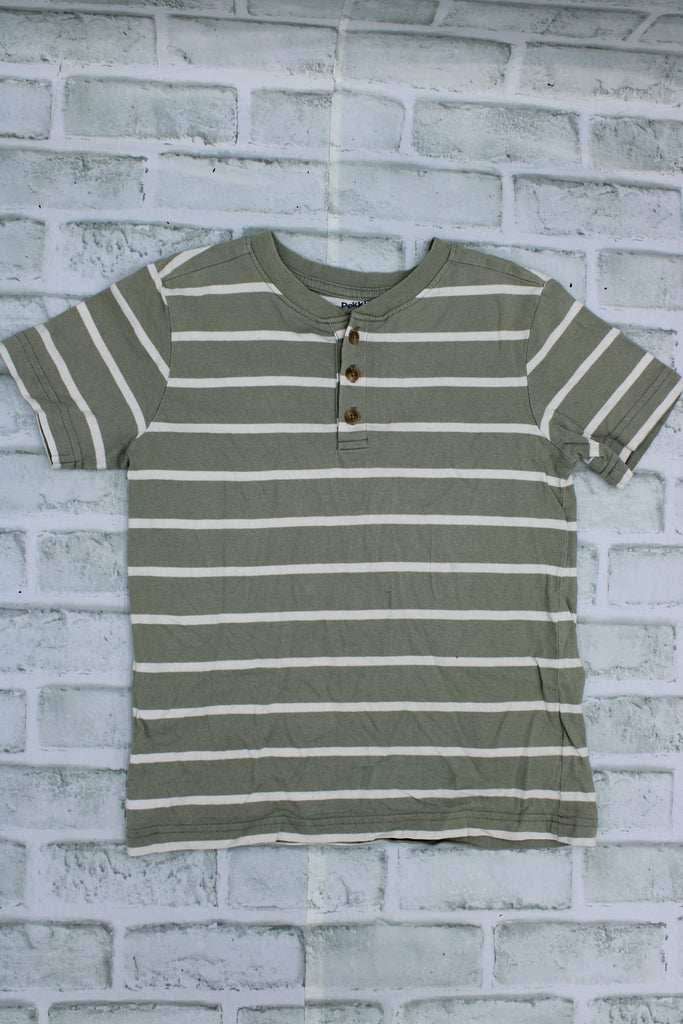Pekkle, Green Striped Tshirt with Buttons, Size 8