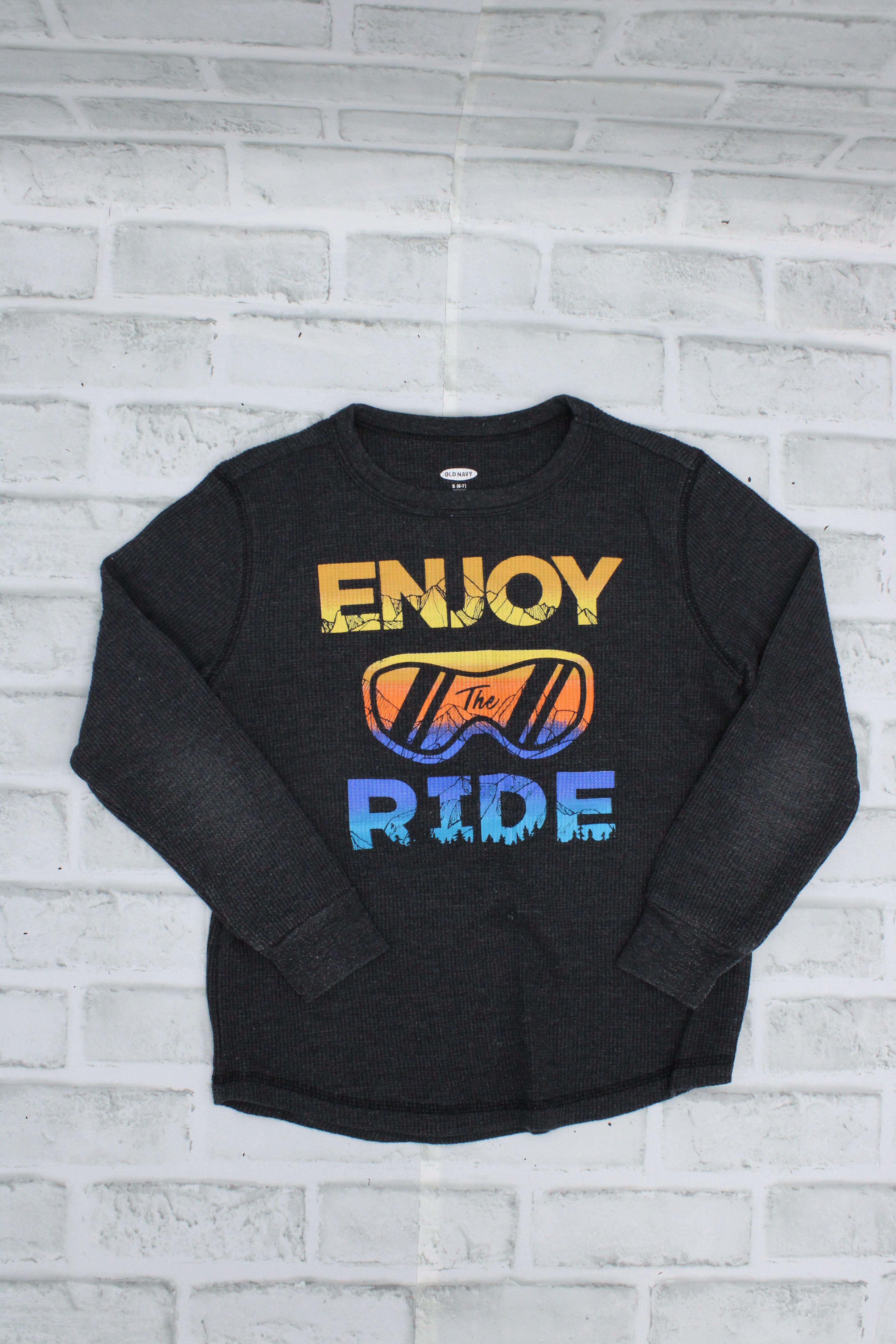 Old Navy, "Enjoy The Ride" Waffle Long Sleeve, Size Small (6-7)
