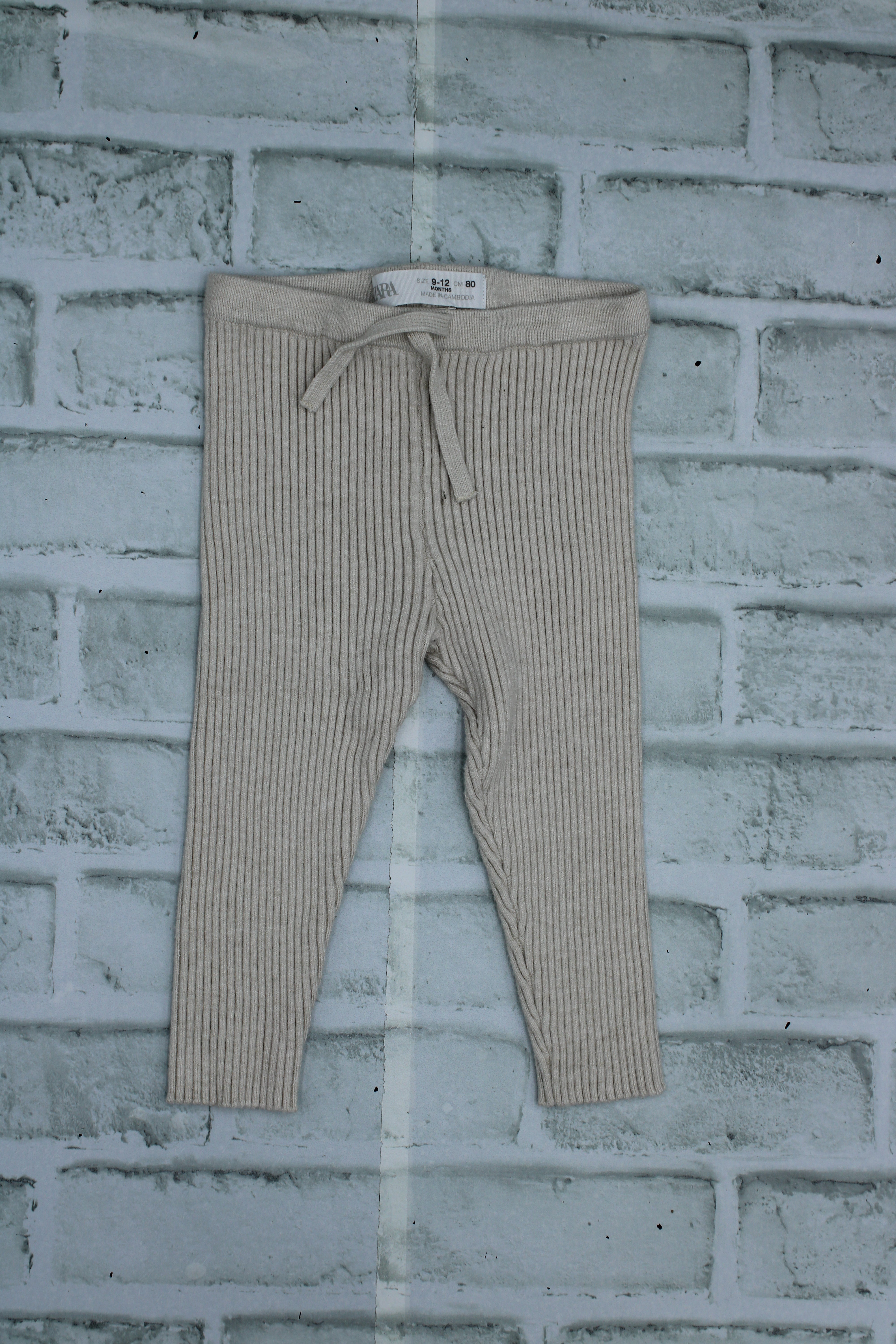 Zara, Beige Ribbed Pants, 9-12 Months