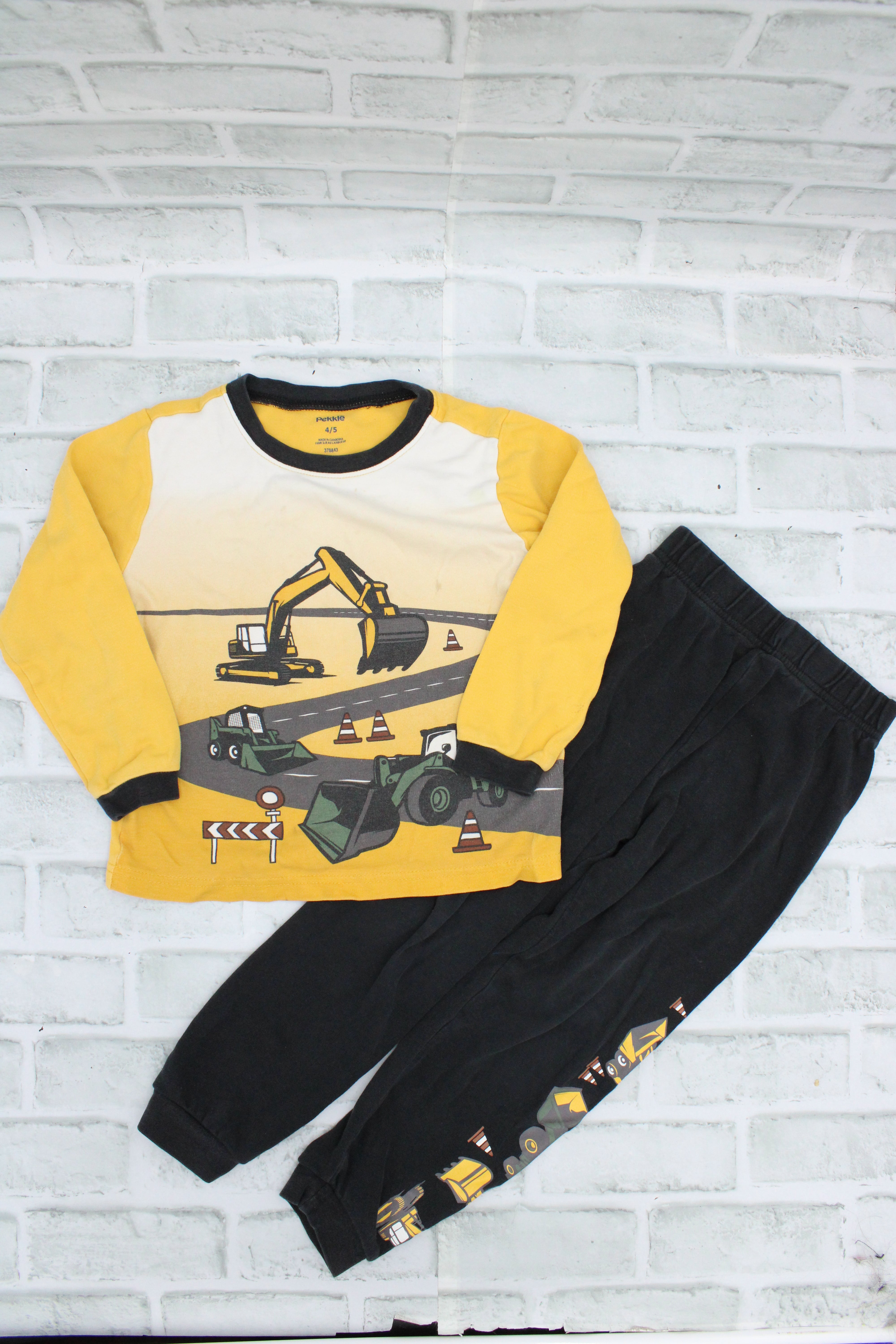 Pekkle, Yellow Construction PJ Set, small stain on front of shirt, Size 4/5